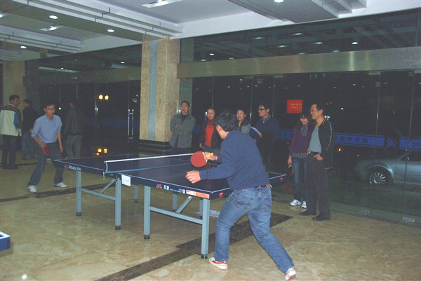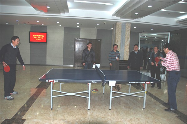 为丰富学院教职工的业余生活,活跃学院体育氛围、切磋乒乓球技,2010年11月19日航空宇航学院在18号楼大厅拉开“航空宇航――飞设杯”乒乓球比赛的首轮交战。公司党委书记李明成同志、系所的许多教授、中青年骨干教师等踊跃参加。