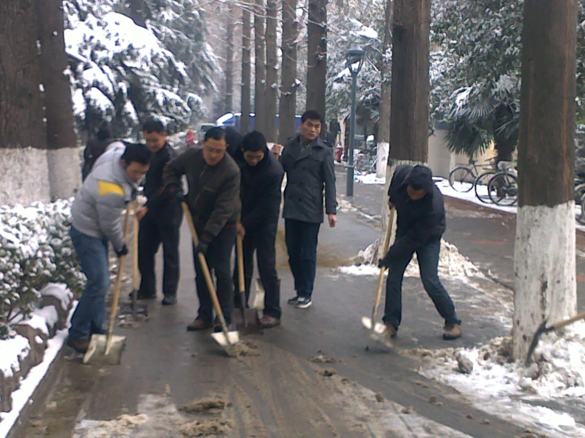 20日上午,公司余雄庆、曾建江教授、院机关部分老师及10余名研究生带上扫雪工具来到御道街和五龙桥的非机动车道和人行道,冒着严寒,以高昂的热情,顶风冒雪,克服困难,经过近一个小时的奋战,将街道积雪清除干净,未来几天南京可能将继续是雨雪天气,公司师生将继续为保障市民和师生出行安全,继续开展义务扫雪工作。