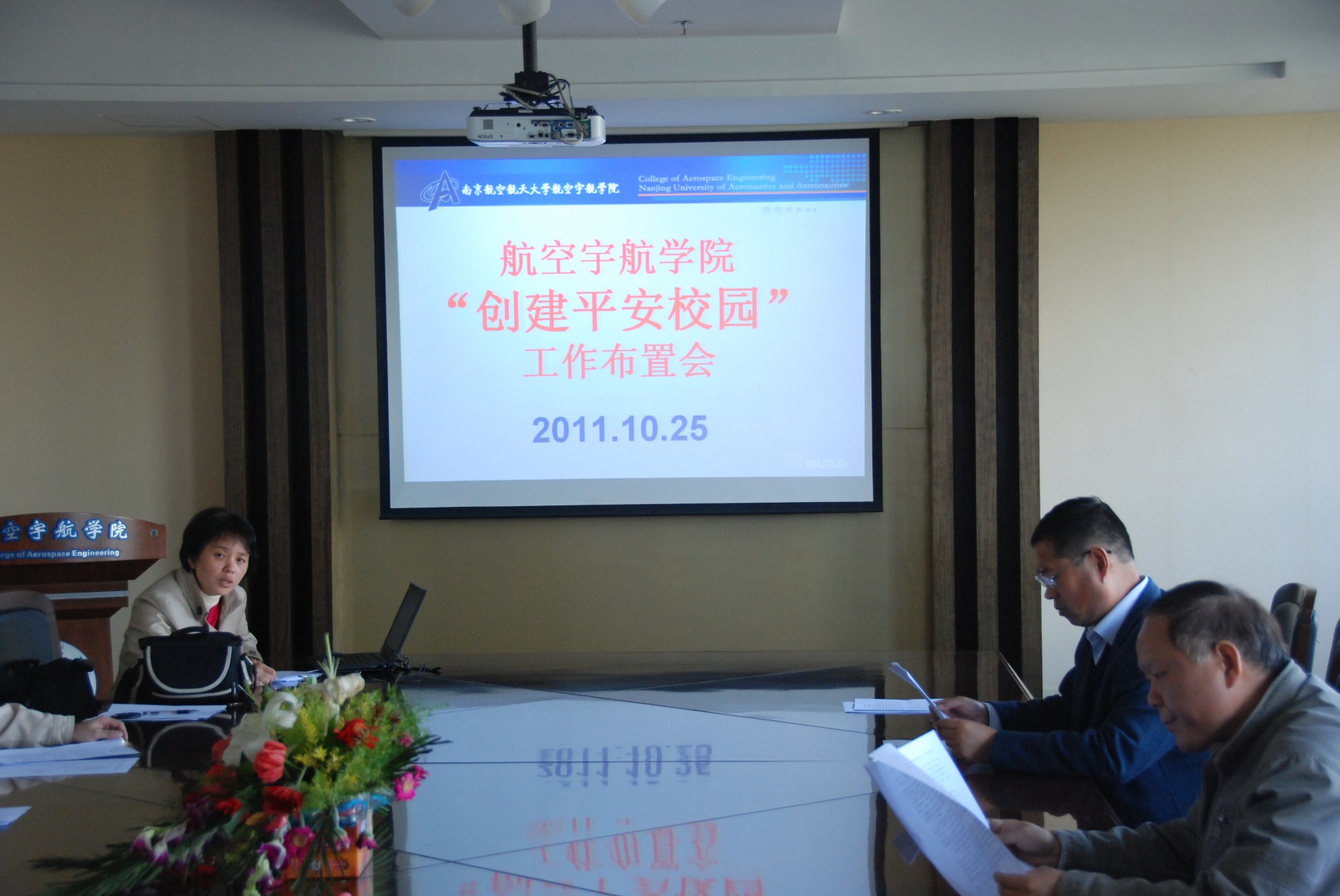 航空宇航学院迎接“平安校园”检查工作布置会10月25日在18-511会议室召开。学院领导以及各系所负责人、各系所安全员等参会。会议由副经理朱春玲主持。