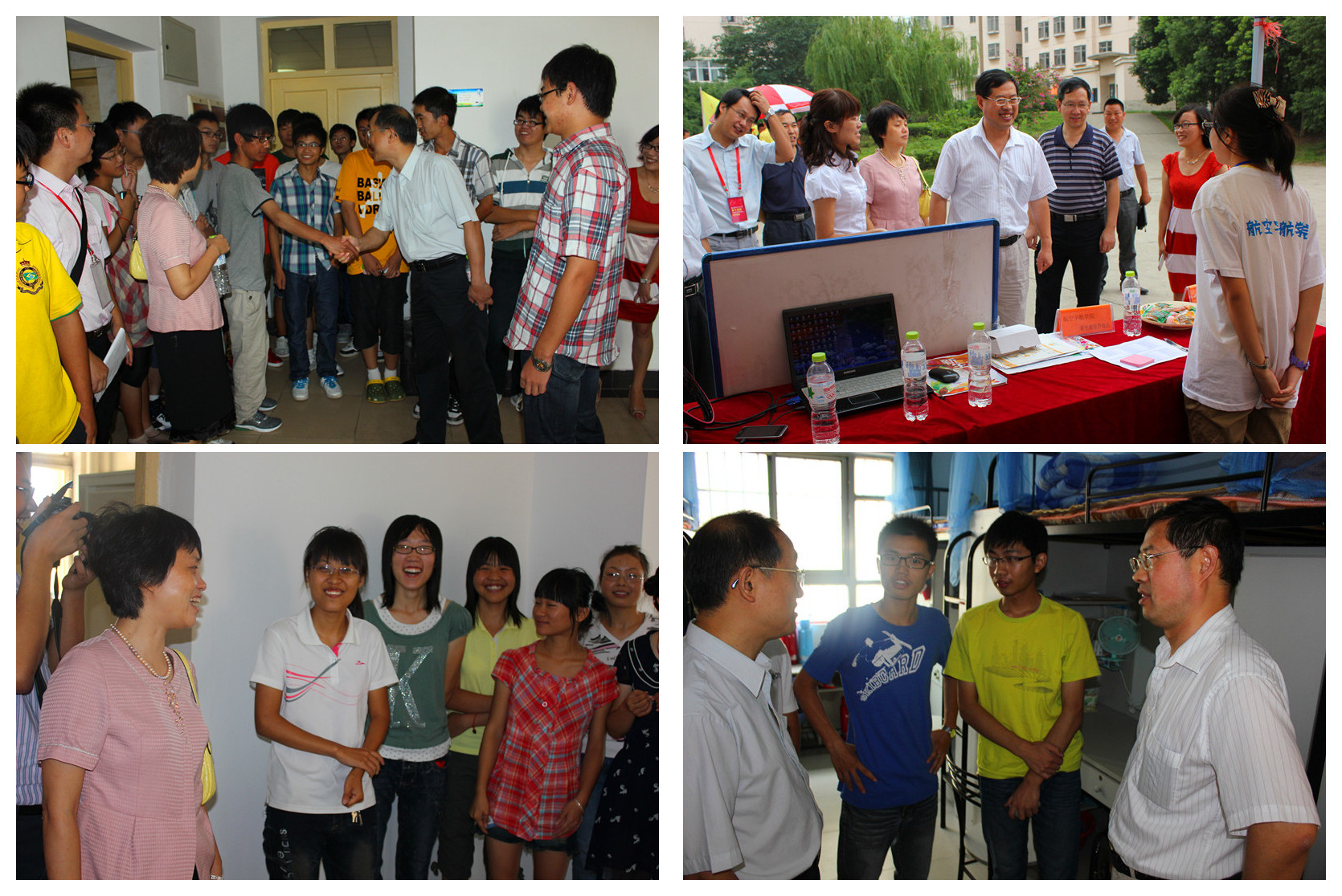 9月8日上午,为全面了解新生的宿舍入住情况,及时协调解决新生遇到的各种困难。航空宇航学院经理赵宁,党委书记李明成,副经理童明波、朱春玲、陈国平、经理助理王中叶、办公室主任贡海俊及团委书记储瑾蓉等一行8位领导在新生辅导员的陪同下,亲自到每位学院新生宿舍进行慰问,为新同学送去关怀和温暖。