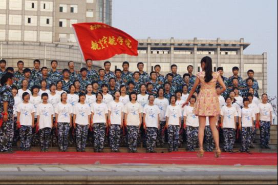 本次赛歌会中公司参赛曲目为《众人划桨开大船》,歌曲以划船为喻,展现了团结就是力量的主题,不仅是同学们学习军旅歌曲成果的展示,更是对同学们进行的集体主义教育。比赛中,女生着航宇院文化衫和军训迷彩裤,男生着军训迷彩作服,整齐的着装显示着航宇院同学昂扬的士气。同学们的演唱旋律坚强有力,声音洪亮统一,吐字清晰,表达感情真挚,富有感染力。除了震撼人心的演唱,公司合唱队精心设计的表演动作也极富吸引力,两组表演划船的同学动作协调有力,男生们振臂呼喊的雄厚之声回荡在广场上空,女生们手扎红飘带的手势表演干脆利落,赢得大家阵阵掌声。场下观众也密切配合,同台上同学积极呼应。最终,表演在“巍巍航宇,志在长空;灿灿群星,雄踞苍穹”的呐喊声中结束,观众热烈高呼“蓝天放歌,航宇飞扬;航宇之光,闪耀南航”,士气威武,震撼全场。