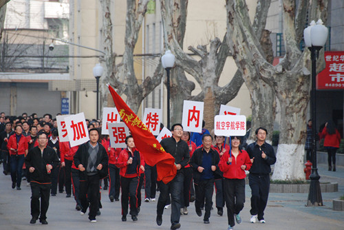 “为建设国内一流国际知名的高水平研究型学院而努力奋斗”,“加强内涵,突出特色” 是公司此次长跑活动的主题。伴随着响亮的口号,在醒目的院旗引领下,公司大部队以整齐的步伐、统一的着装、昂扬向上的精神状态,展示着航宇人的奋发向上、团结一心、锐意进取的精神风貌。校园里,整齐的口号声此起彼伏,长跑队伍成为一道流动风景。