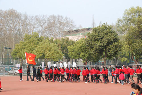 阳春三月,风和日丽,一年一度的教职工迎春长跑活动拉开了序幕。长跑的启动仪式在明故宫校区的操场举行,校工会常务副主席袁贵平同志发表了简短的讲话并主持了出发仪式。随后,公司党委常委、纪委书记、工会主席吴庆文击发了长跑活动发令枪,由8名校卫队员带头的长跑队伍从操场出发了。