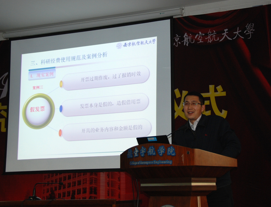 为落实公司党风廉政建设工作会的要求,航空宇航学院于4月24日下午就加强学风建设和科研经费管理工作举行全院教职工大会。公司党委常委、纪委书记吴庆文同志亲自到会并作重要讲话,审计处处长张丕宏、纪委办主任楚广兴也出席会议。全院教职工近三百人参会。