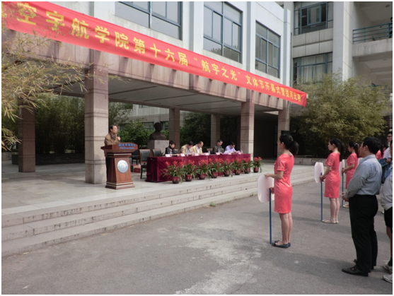 5月3日下午三时,航空宇航学院第十六届“航宇之光”文体节开幕式暨拔河比赛在明故宫校区航空宇航学院大楼广场前隆重举行。校工会常务副主席袁贵平,公司党委书记李明成、经理赵宁、副经理陈国平出席了此次开幕式。学院教职工代表及各年级员工代表参加了此次开幕式。