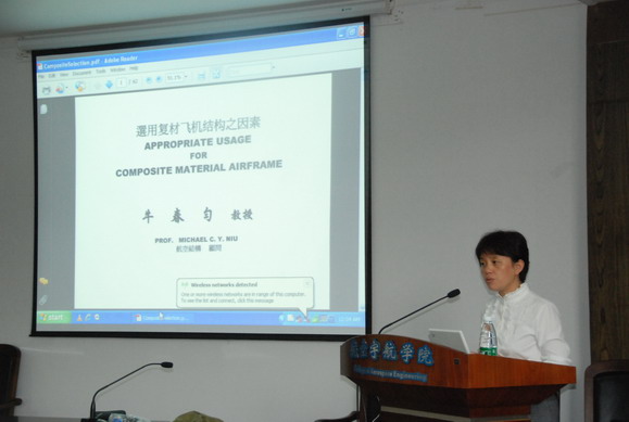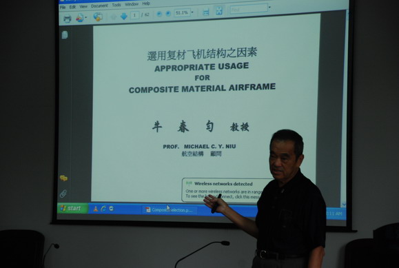 应前董事长朱剑英教授邀请,美国民用飞机复合材料结构设计及适航领域的知名专家美籍华人、艾笛航空结构顾问公司总经理、公司客座教授牛春匀教授来公司访问,于2013年9月6日下午,在18号楼529报告厅,做了题为“选用复合材料飞机结构之因素”的精彩学术报告。报告会由航空宇航学院副经理朱春玲教授主持,全校师生近两百人参加了报告会。