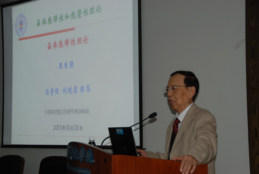 10月30日下午,王自强院士为公司师生做了题为“晶体的热弹性和热塑性理论”的学术报告。详细介绍了在弹性稳定理论、断裂力学、塑性应变梯度理论等方面的研究工作,并耐心的解答台下师生的提问,最后,王院士说:“今天大家的提问很有水平,这是他作报告最高兴的事”。郭万林教授主持了报告会,全校师生近百人参加了报告会。