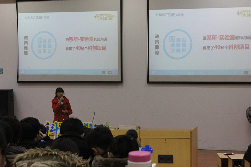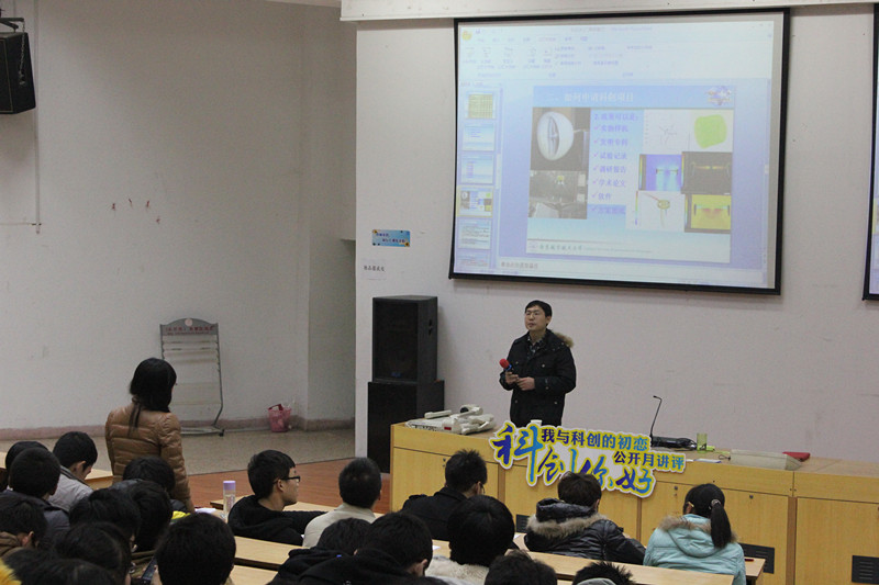 朱清华老师则结合自身经历带领全体同学开始了“我与科创的恋爱初体验”。他结合场下各班员工代表提出的棘手问题,详细讲述了如何进行科创前的准备、如何进行科创、如何申请科创项目以及科创的收获感悟。随后“江苏好青年”黄鸣阳、收获了20余个公司offer的谭鑫的科创故事更是激励同学们大胆迈开第一步,亲身体验科创的美妙“让科创之恋进行到底”。从惠及每位同学的趣味赛事到涵盖各专业高级赛事的整理分析,从科创基金、科创俱乐部到校企合作的政策支持,学院为正想要亲近科创的同学们提供鼎力帮助。