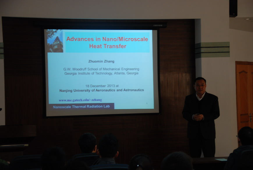 访问期间,张卓敏教授做了题为“Advances in Nano/Microscale Heat Transfer (微纳尺度传热进展)”的学术报告。报告综述了微纳尺度传热的发展历史和研究现状,分析了微纳尺度传热的特性和机理,讨论了微纳尺度传热的热点问题,并介绍了佐治亚理工学院在微纳尺度传热方面的研究成果。报告结束后,现场老师和员工就报告内容进行了积极讨论。张教授还参观了公司人机与环境工程实验室,并与方贤德教授课题组进行了深入座谈。