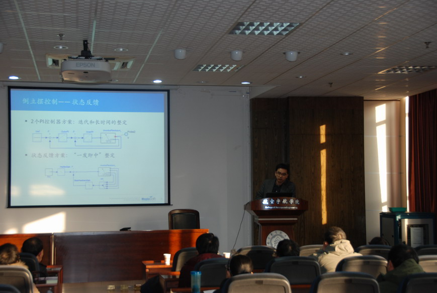 访问期间,张文丰博士做了题为“Symbolic Computation in Advanced Space and Mechatronic Applications”的学术报告。报告介绍了MapleSim工具下建立行星探测车的动力学模型,讨论了行星探测车的路径优化,以及通过硬件在环来模拟仿真整个行星探测车的行驶环境特性。该报告还表明研发平台开发过程中数学符号运算在相似的动力学仿真研究中的重要性。