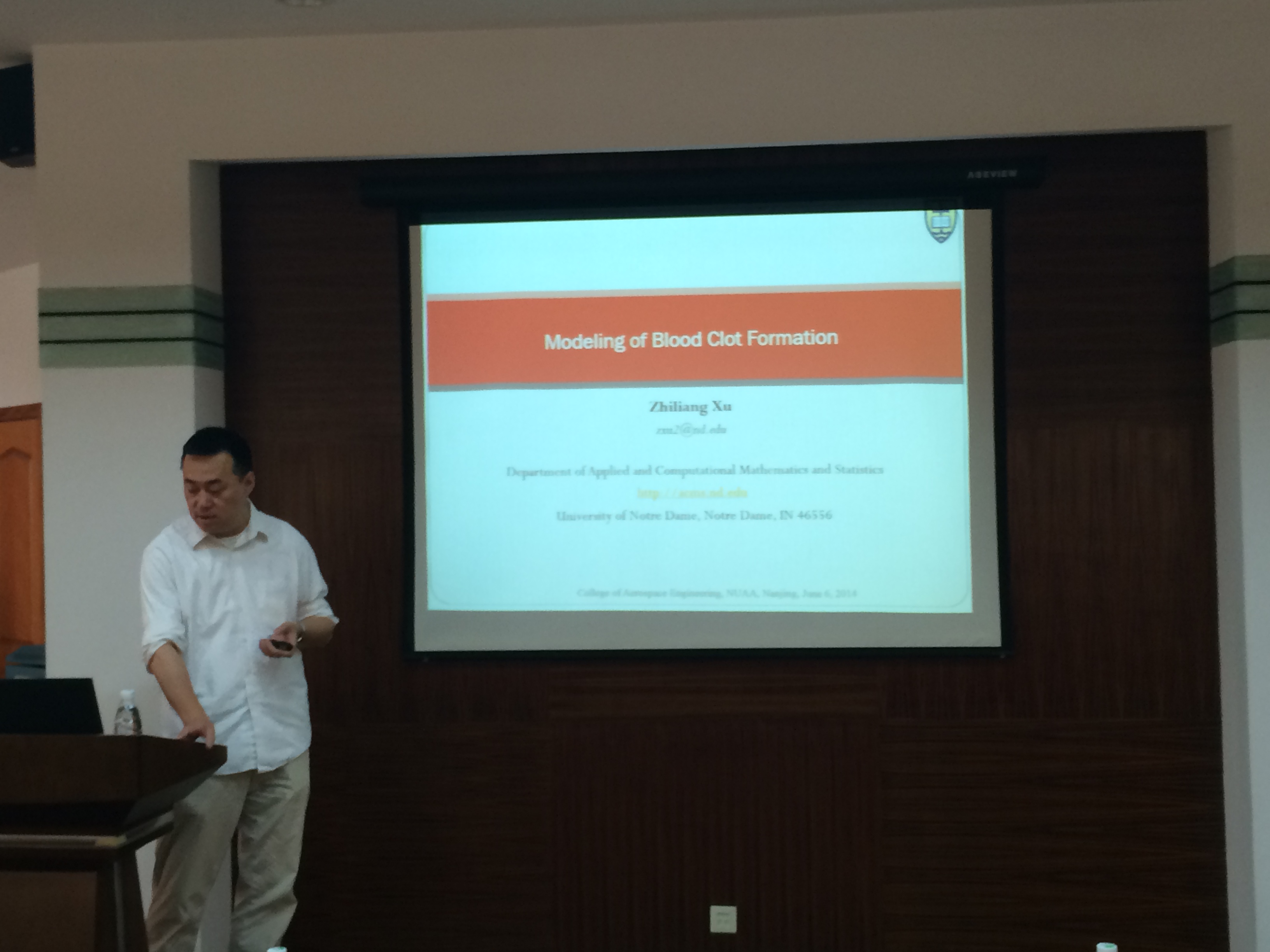 访问期间,许志良副教授做了题为“Modeling Blood Clot Formation”的学术报告,就计算生物流体最新研究进展做了详细的报告。