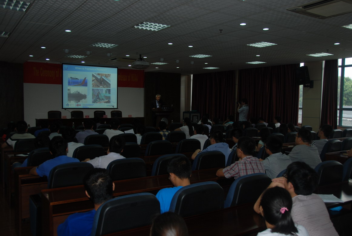 授聘仪式后,博勒教授为公司师生做了题为“Damage Tolerance from Aluminium to Concrete � Managing Engineering Structures a Smarter Way”的学术讲座,分别就基于损伤容限的结构设计准则和结构健康监测技术的发展及工程中的实际应用问题做了详细的阐述。