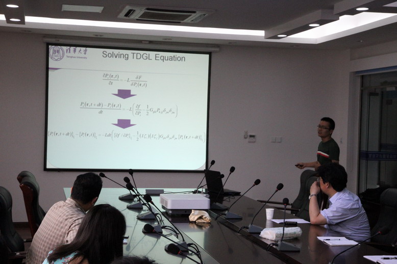 访问期间,王建军博士为公司师生做了题为“Phase Field Model and Its Application in Ferromagnetics/Ferroelectrics Multiferroic Heterostructures”的学术报告。报告内容涉及相场模型与计算的基本知识以及在铁磁、铁电、多铁以及异质结构中的应用,重点讲述了在异质结构的相场模型。讲学结束后,王建军博士还与与会师生开展了深入的讨论,从讨论中加深了对于这一国际前沿领域的了解。