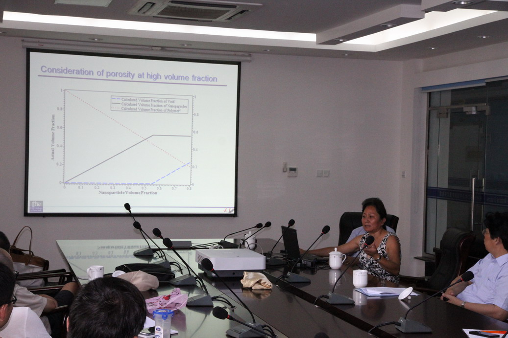 访问期间,Jackie Li教授为公司师生做了题为“Optimization of Nanodielectric Composites for Energy Storage Applications”的学术报告。内容涉及纳米介电复合材料力学等,重点讲述了纳米复合材料电容器的储能优化理论