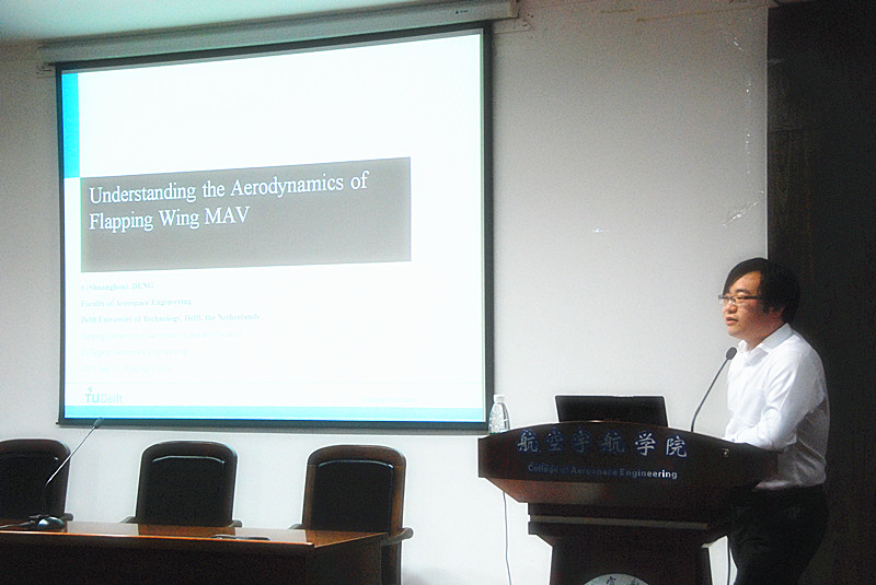 访问期间,邓双厚博士为公司师生做了题为“Understanding the Aerodynamics of Flapping Wing Micro Air Vehicle”的学术报告。报告内容包括先进风洞试验技术、扑翼非定常空气动力最新研究进展与成果等。报告结束后,荷兰代尔夫特理工大学航空宇航学院邓双厚博士还与与会师生开展了深入的讨论,双方获益匪浅。