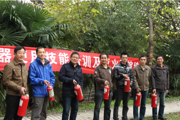 11月12日下午,明故宫校区14号楼北侧,学校保卫处组织了消防器材使用技能培训和灭火演练,公司组织了各系所安全员和消防员参加了演练。