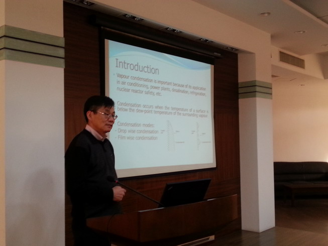 访问期间,栗俊德教授为公司师生做了题为“Vapor Condensation in the Presence of Non-Condensable Gas”的学术报告。报告内容涉及人机与环境工程领域的前沿问题,融入了栗教授的丰富的研究成果和研究经验。报告结束后,栗俊德教授还与分师生举行了座谈会,就进一步学术交流和合作达成了意向。栗教授就中外教育模式的异同、学习和科研方法等进行了介绍,参会人员就感兴趣的问题进行了积极的提问。栗教授邀请公司有关人员有机会到澳大利亚维多利亚大学学习或访问,并就合作申请有关基金课题达成了意向。