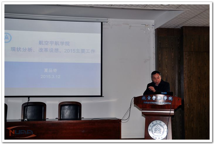 经理夏品奇首先作年度工作报告,他用详实的数据、鲜活的事例深入剖析了学院现状,从队伍建设机制改革、人才培养模式改革、科研管理机制改革、国际合作机制改革、学院管理机制改革等五个方面汇报了学院综合改革主要措施,并部署了2015年主要工作。夏经理表示,学院将以扎实推进综合改革为契机,凝聚核心力量,创新体制机制,抢抓发展机遇,激励争先争优,全面提升人才培养质量、科学研究水平和社会服务能力,努力把学院建设成为国际一流的航空宇航学院。公司党委书记孔垂谦传达了学校第十五届党委第十三次全委(扩大)会议精神,号召全院干部教师尤其是广大党员要进一步增强责任意识和担当精神,大力支持改革、坚定参与改革,积极进取、奋发有为,为实现学院发展蓝图做出更大贡献。