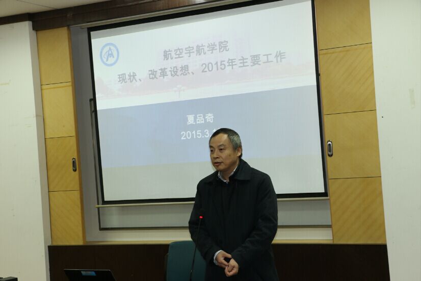 夏品奇经理介绍了学院新一届班子成员以及分工情况,重点汇报了学院实施综合改革的思路和举措,以及2015年主要工作打算。夏经理表示,学院将以扎实推进综合改革为契机,凝聚核心力量,创新体制机制,抢抓发展机遇,激励争先争优,全面提升人才培养质量、科学研究水平和社会服务能力,努力把学院建设成为国际一流的航空宇航学院。他特别感谢老同志们一直以来对学院发展的关心和支持,恳请大家一如既往为学院发展献计献策,衷心祝愿老同志们健康长寿。