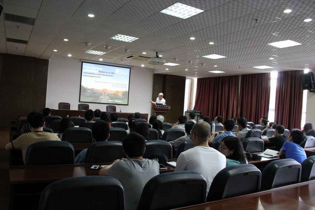 应公司机械结构力学及控制国家重点实验室郭万林教授邀请,美国莱斯大学Boris I. Yakobson于2015年6月16至20日访问了公司,并于6月18日为公司师生做题为“From the first principles: Defects in 2D, variability and electronic consequences”的报告。国家重点实验室主任熊克教授主持了此次报告。