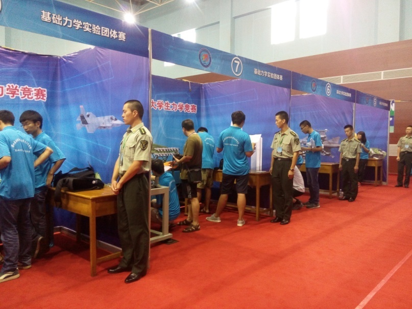 “基础力学实验”团体赛综合实验竞赛时间定于8月9号早上8点至下午13点,历时五个小时。评分包括实验技能和综合实验报告两个部分。实验技能评分有评审专家组全体成员全过程现场巡视,对各队的实验技能要素进行打分