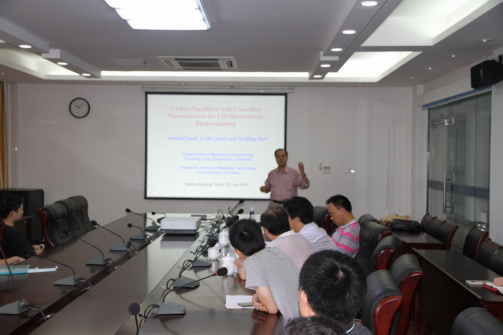 应公司机械结构力学及控制国家重点实验室高存法教授邀请,澳大利亚悉尼大学教授、澳大利亚联邦杰出学者、澳大利亚科学院和工程院两院院士、英国皇家学会外籍院士Yiu-Wing Mai(米耀荣)教授于2015年7月20日至7月25日访问了公司,并于7月22日为公司师生做题为“Carbon Nanofibers with Controlled Nanostructures for LiB Electrodes by Electrospinning”的学术报告。