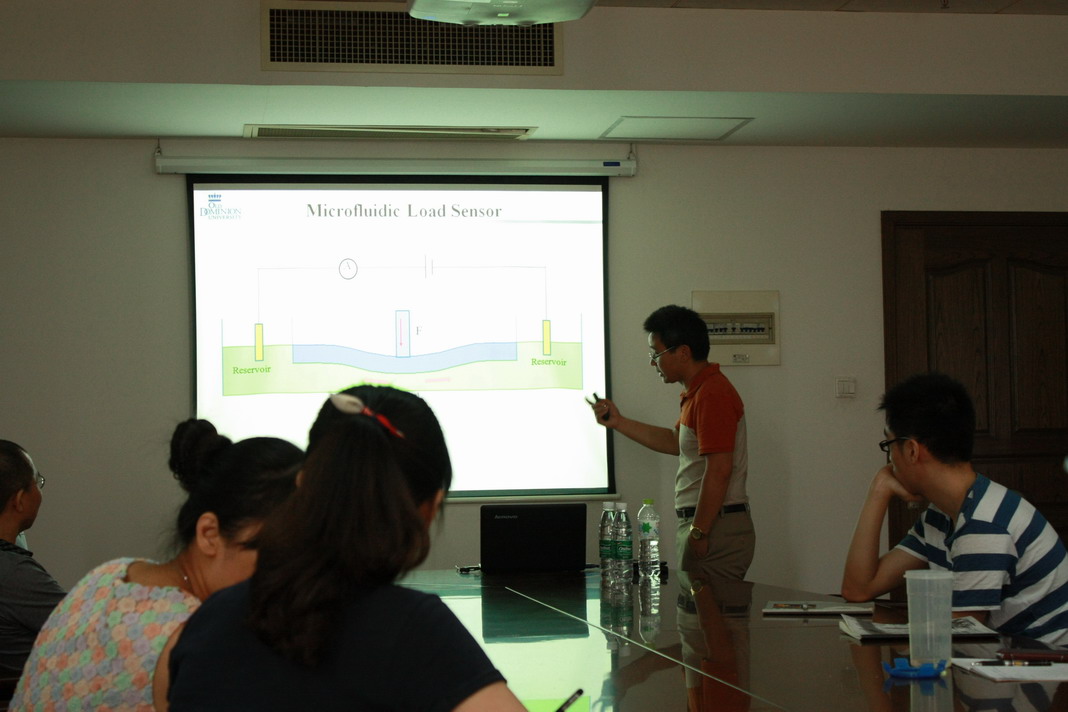应公司机械结构力学及控制国家重点实验室黄再兴教授邀请,美国欧道明大学机械航空工程学院副教授钱诗智博士于2015年7月12至14日访问了公司,并于7月14日为公司师生做题为“Electrokinetic Transport in Micro/Nano-fluidics”的学术报告。黄再兴教授主持了此次报告。