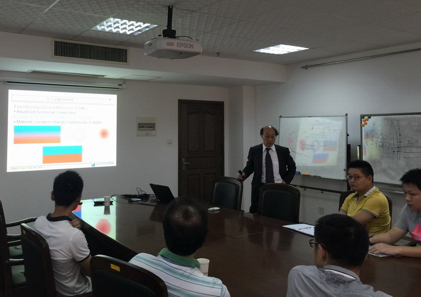 应公司机械结构力学及控制国家重点实验室高存法教授邀请,公司客座教授、欧洲科学院院士、德国锡根大学土木工程系主任、著名力学专家张传增教授于2015年8月12日至9月5日访问了公司,并分别于8月14日、8月27日为公司师生做题为“Transient Dynamic Crack Analysis in Magnetoelectroelastic Solids”、“Advanced Analysis and Applications of Multifunctional Materials and Structures Part I: Functionally Graded Materials and Structures”及“Advanced Analysis and Applications of Multifunctional Materials and Structures Part II: Phononic Crystals and Structures”的三场学术报告。高存法教授主持了报告会。