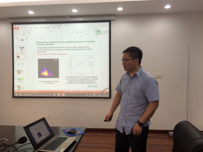 应公司机械结构力学及控制国家重点实验室杨颖教授邀请,美国橡树岭国家实验室纳米相材料科学研究中心李千博士于2015年9月2至3日访问了公司,并于9月2日为公司师生做题为“Nanoscale Structure Dynamics Probed via Advanced Band-Excitation Piezoresponse Force Microscopy”的学术报告。杨颖教授主持了此次报告。