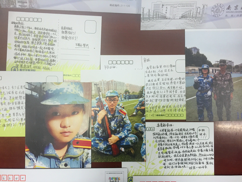 一张明信片。学院为每个新生准备了一张明信片,现场书写明信片。明信片上精挑细选了每位新生在军训期间最靓丽的照片。新生在新家庭灿烂的笑容是让父母最安心最感动的中秋礼物。