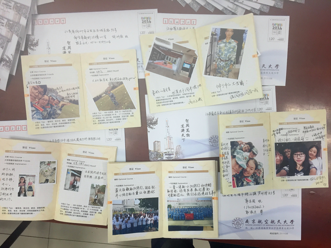 在此次中秋感恩教育活动,辅导员老师带着员工为父母做了三件事,书写一张明信片,完成一本新生护照,打一通电话,通过“三个一”活动来表达心中对父母的思念和感恩。