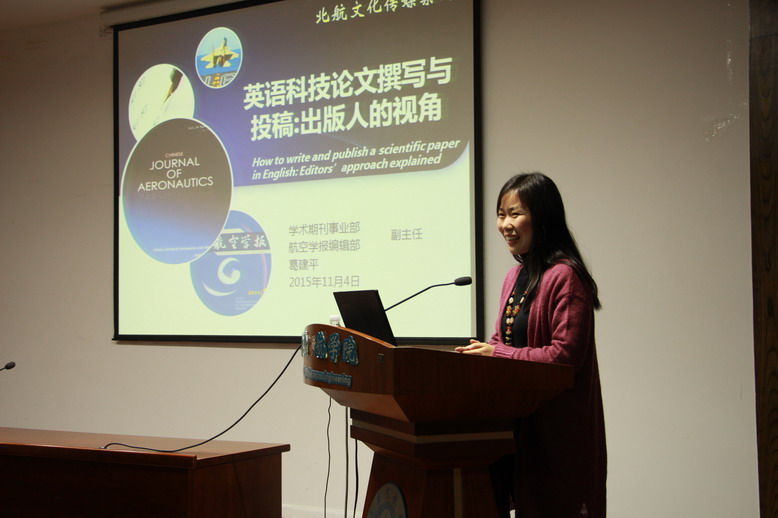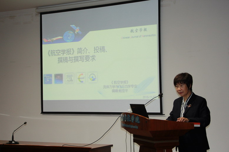 11月4日上午,在明故宫校区A18-529报告厅,鲍亚平编辑为公司师生做题为“《航空学报》简介、投稿、撰稿与撰写要求