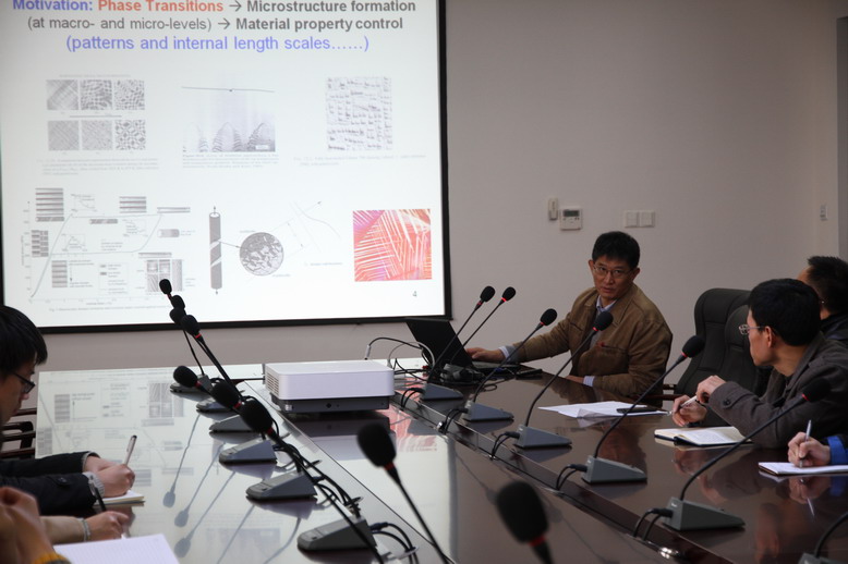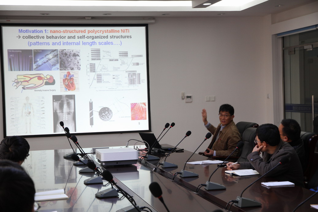 应公司机械结构力学及控制国家重点实验室高存法教授邀请,香港科技大学Qingping SUN教授于2015年12月14日来公司学术访问,并为公司师生做了题为“Effects of Time and Length Scales on Phase Transition Behavior of Solids”的学术报告。副经理沈星教授主持了此次报告。