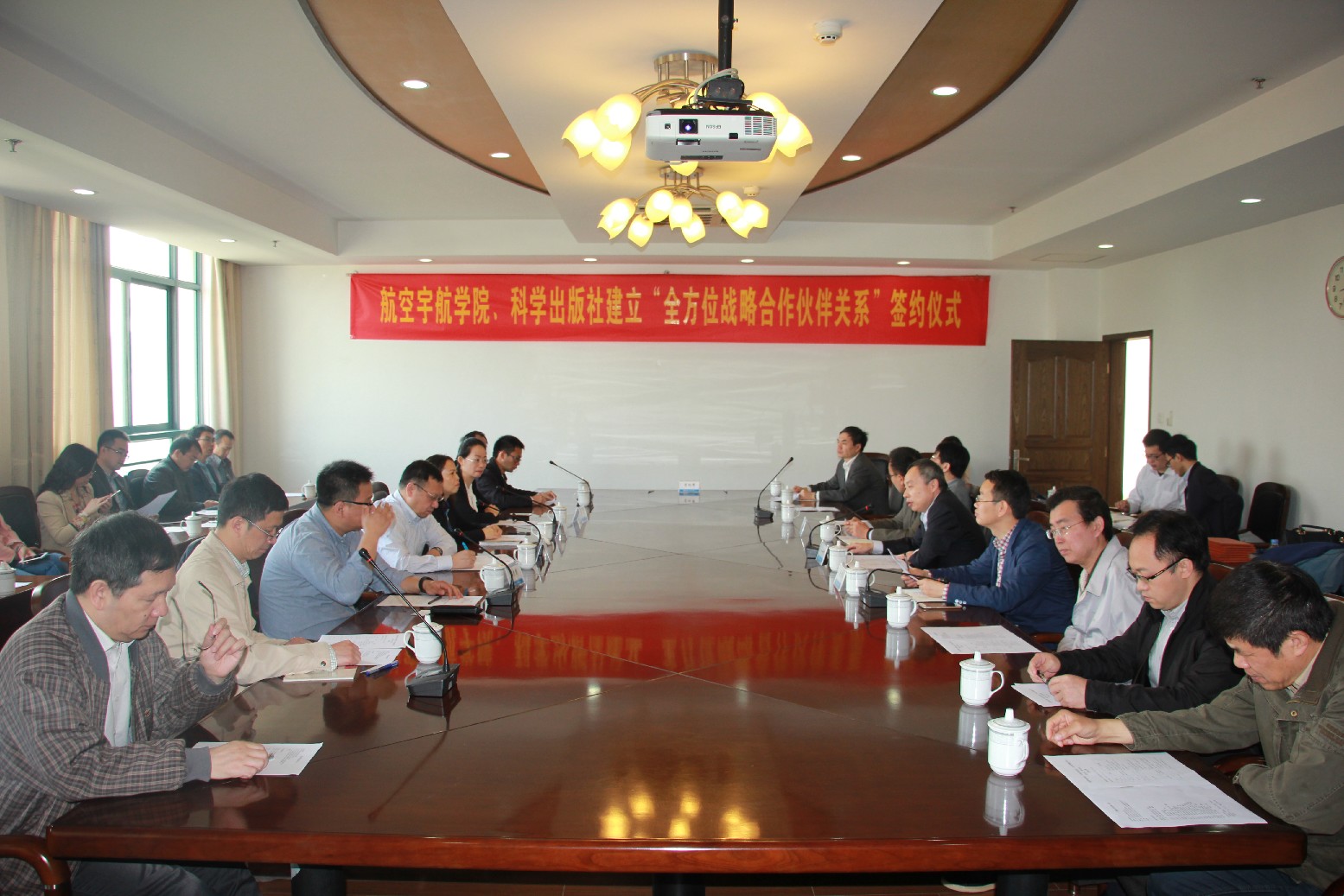 4月19日上午,航空宇航学院与科学出版社战略合作协议在学院511会议室举行。按照协议内容,科学出版社将出版学院教师编写的飞行器设计与工程力学品牌专业系列教材和飞行器系列专著。科学出版社副总经理胡华强、科学出版社工科分社社长匡敏、科学出版社上海分社总经理潘志坚等,航空宇航学院经理夏品奇、副经理沈星、蒋彦龙以及学院系所长、教师代表出席了签约仪式。签约仪式由蒋彦龙副经理主持。