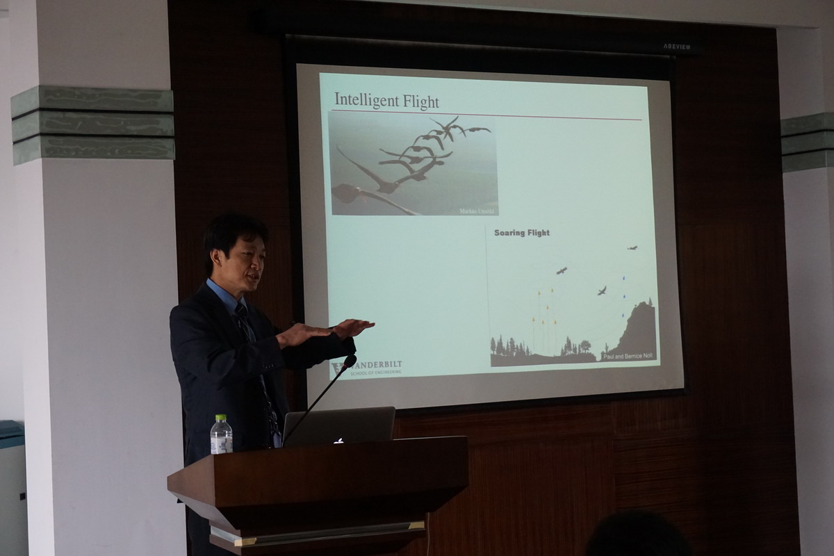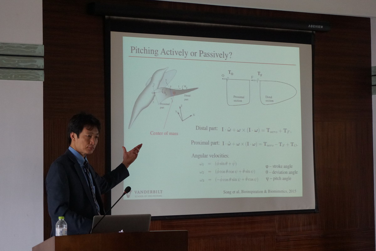 应公司航空宇航学院空气动力学系周春华教授邀请,美国范德堡大学机械工程系Haoxiang Luo副教授于2016年4月27日至28日访问了公司,并于4月27日为公司师生做了题为“Recent lessons from the wings of nature”的学术报告。Luo副教授阐述了鸟和昆虫飞行的空气动力学和弹性力学机理、对飞行器设计的启发,以及其团队在该领域的最新研究成果。报告内容丰富、精彩,对公司相关科研工作具有借鉴作用,参加报告会的师生受益匪浅。同时, Luo副教授还结合自己多年的研究经历,讲述了科学研究的思维、方法和一般规律等若干问题。周春华教授主持了此次报告会。