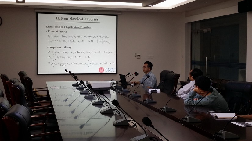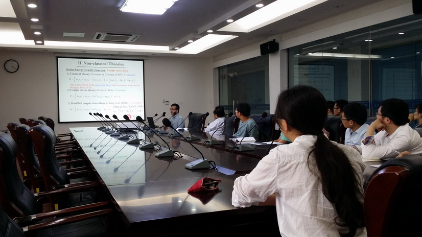 应公司机械结构力学及控制国家重点实验室钱征华教授邀请,美国南卫理公会大学鲍比莱尔工程学院 Xin-Lin Gao教授于2016年5月23日至25日访问了公司,并于5月24日为公司师生做题为“Modeling Size Effects at Small Length Scales Using Higher-Order and Surface Elasticity Theories”的学术报告。报告内容丰富、生动、精彩,介绍了适合分析尺寸效应或者表面能影响的两种高阶弹性理论和一种表面弹性理论及其分别在梁、板等简单结构方面的应用。对公司相关科研工作具有借鉴作用。同时,还结合自己多年的研究经历,讲述了如何在基础研究上进行创新性工作等若干问题。钱征华教授主持了此次报告会。