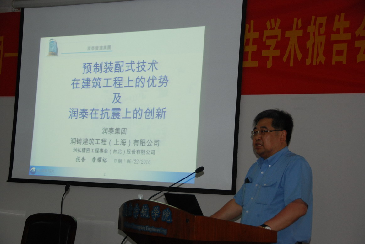 应航空宇航学院土木工程系余红发教授邀请,台湾润泰集团-上海润铸建筑工程总经理詹耀裕先生于2016年6月22日访问了公司,为公司师生做题为“预制装配式技术在建筑工程上的优势及润泰在抗震上的创新”的学术报告。报告内容丰富、生动、精彩,介绍了润泰预制装配式混凝土构件在文明施工、质量、工期和成本等方面的优势,强调了“套筒式连接器”在装配式建筑结构中的重要作用。在预制构件的生产制造领域,润泰集团近20年来创建了成熟的“游牧式预制工法”,提高了构件的生产效率,降低了制造成本,实现了可持续发展方向,对公司土木工程学科的相关科研工作具有借鉴作用。