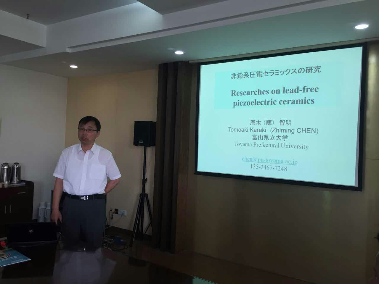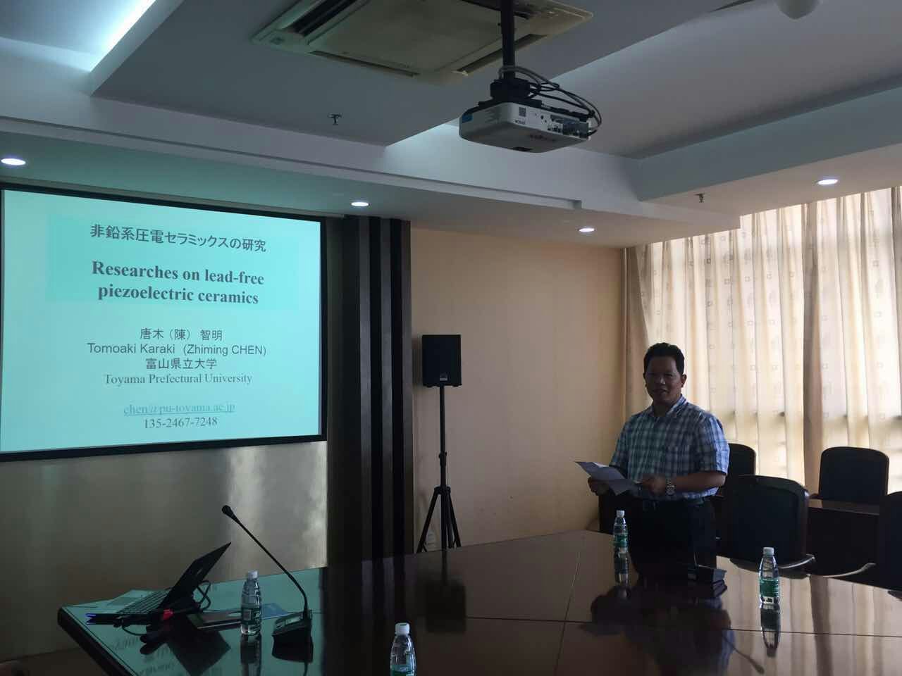 应公司机械结构力学及控制国家重点实验室朱孔军教授邀请,日本富山县立大学工学系智能设计工程专业KARAKI Tomoaki 教授于2016年9月8日访问了公司,并为公司师生做了题为“Research on lead-free piezoelectric ceramics in TPU”的报告。KARAKI Tomoaki教授介绍了日本富山县立大学在压电陶瓷应用、无铅压电陶瓷方面的研究进展。报告结束后KARAKI Tomoaki 教授与在场的师生就相关领域的研究进行了交流和讨论。师生们认真聆听,踊跃提问,受益匪浅。朱孔军教授主持了报告会。