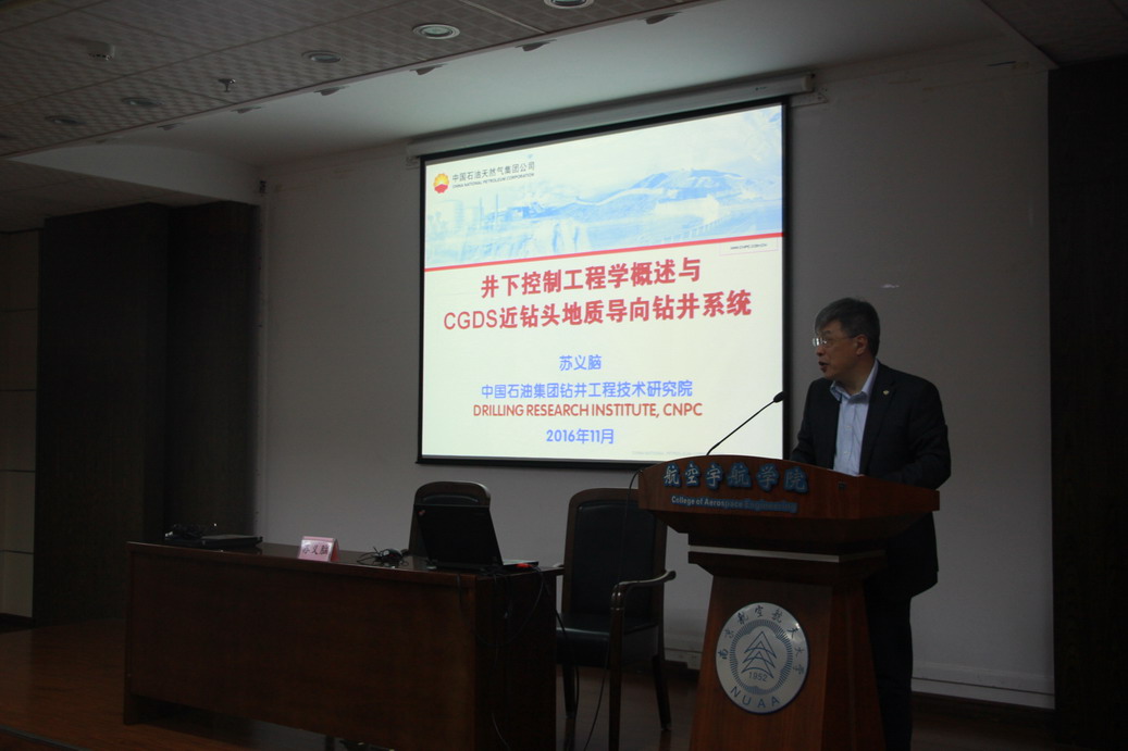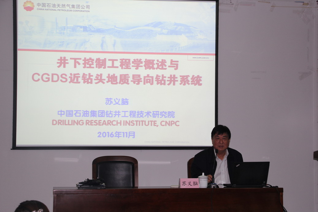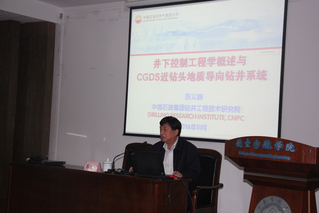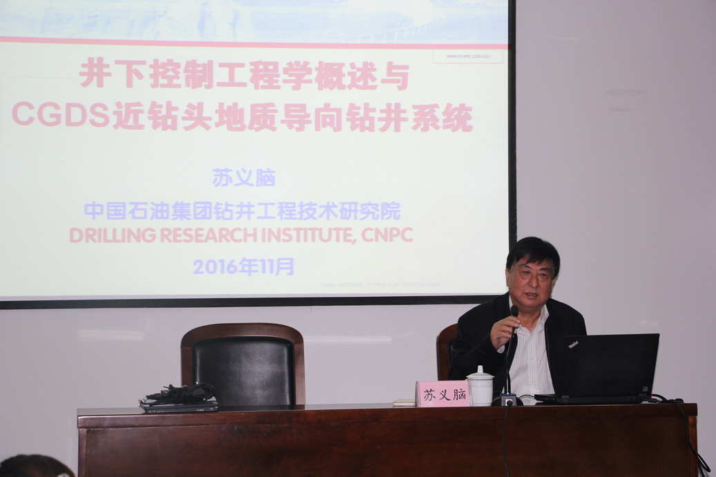 应中国振动工程学会邀请,中国工程院苏义脑院士于11月7日上午10点,在明故宫校区航空宇航学院报告厅做了题为“井下控制工程学概述与CGDS近钻头地质导向钻井系统”的学术报告,董事长助理熊克教授主持了此次学术报告会。