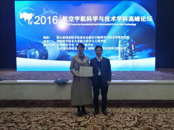 2016年11月12日,首届航空宇航科学与技术学科高峰论坛在湖南长沙举行,会上公布了由国务院学位委员会航空宇航科学与技术学科评议组、中国航空学会、中国宇航学会组织评选出的航空宇航科学与技术学科全国优秀博士学位论文,并举行了隆重的颁奖仪式。公司共有两篇博士学位论文获评,航空宇航学院季宏丽的博士学位论文《飞行器结构压电半主动振动控制研究》获2011-2012年度航空宇航科学与技术学科全国优秀博士学位论文,导师裘进浩教授;航空宇航学院宋来收的博士学位论文《压电叠层作动器驱动的直升机结构响应自适应控制》获2013-2014年度航空宇航科学与技术学科全国优秀博士学位论文,导师夏品奇教授。