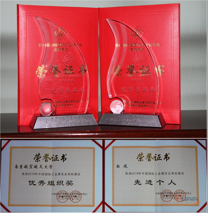 2016年11月1日至5日,以“创新、智能、绿色”为主题的第18届中国国际工业博览会(以下简称“工博会”)在上海国家会展中心隆重举行。公司科技部紧密结合大会主题,围绕学校科研特色,特装展示了学校在通用航空、智能制造、节能环保、新能源汽车、新材料等领域的先进成果,取得了喜人成绩。公司展品“力与位移耦合控制的汽车动力转向系统”、“鸿雁HY30系列全地形通用小型长航时无人机系统”分别荣获第18届中国国际工业博览会高校展区优秀展品奖一等奖和二等奖,学校获得教育部科技发展中心和工博会高校展区组委会联合颁发的2016年中国国际工业博览会高校展区优秀组织奖和先进个人奖。