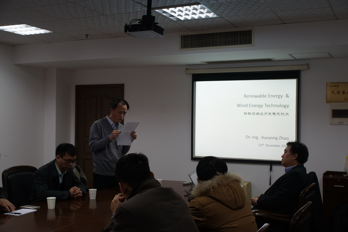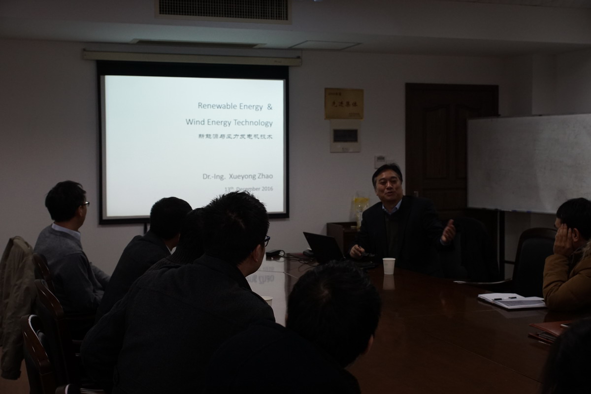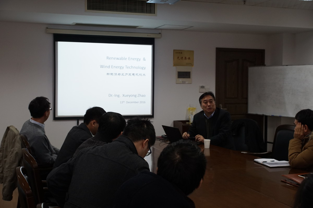 应公司机械结构力学及控制国家重点实验室金栋平教授邀请,南京高速齿轮集团有限公司技术副总裁赵学永博士于2016年12月13日访问了公司,并为公司师生做了题为“新能源与风力发电机技术”的学术报告。报告介绍了新型风力发电等方面内容。报告结束后赵学永博士与在场的师生就相关领域的研究进行了交流和讨论。师生们认真聆听,特别是博士生们踊跃提问,受益匪浅。金栋平教授主持了报告会。
