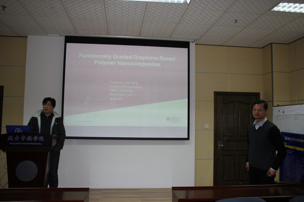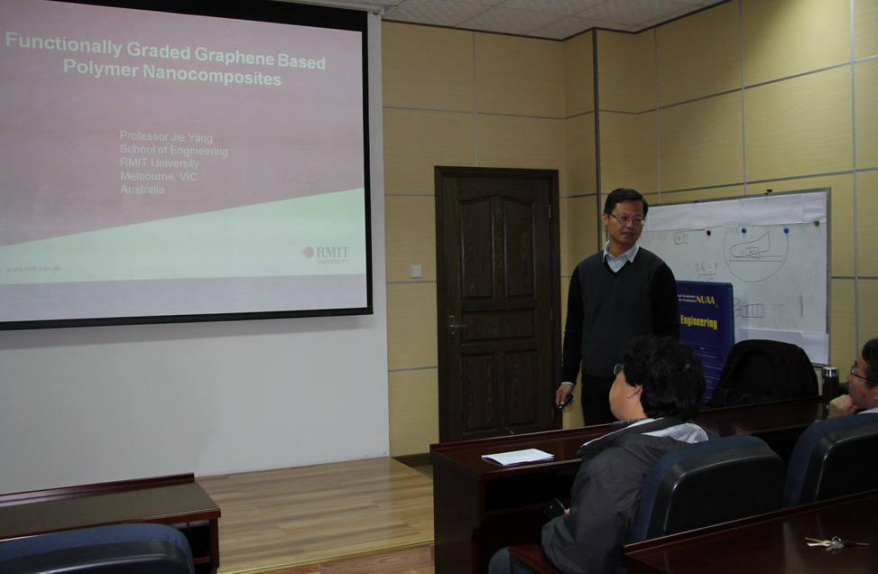 应公司机械结构力学及控制国家重点实验室高存法教授邀请,澳大利亚皇家墨尔本理工大学工程学院Jie Yang教授于2016年12月9日至10日访问了公司,并于12月9日为公司师生做了题为“Functionally Graded Graphene Reinforced Polymer Nanocomposites”的学术报告。报告结束后Jie Yang教授与在场的师生就相关领域的研究进行了交流和讨论。师生们认真聆听,踊跃提问,受益匪浅。高存法教授主持了报告会。