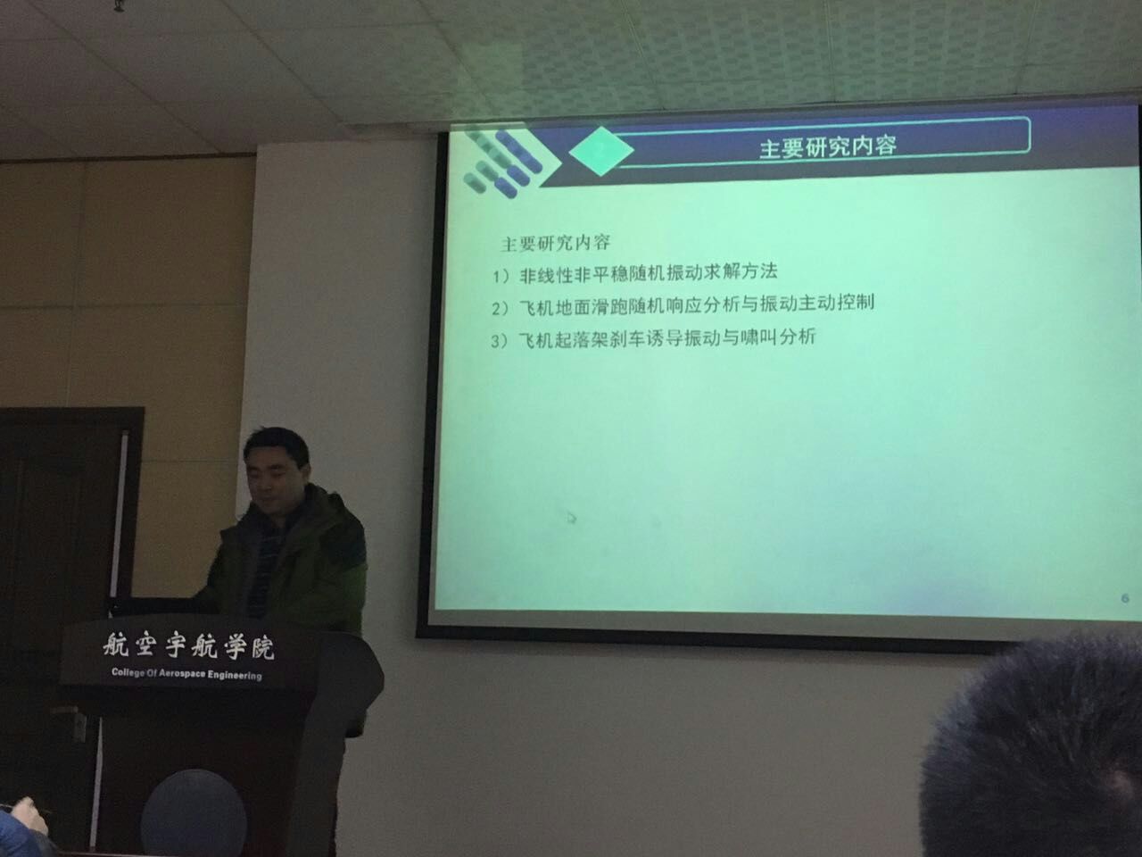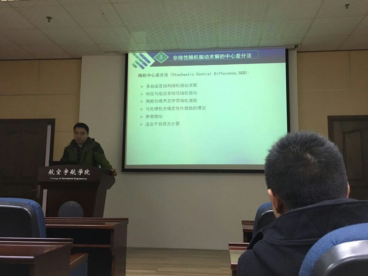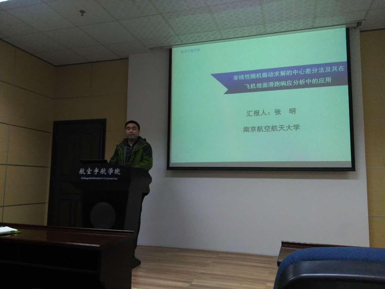 按照校人事处关于公派留学回国教师的要求,航空宇航学院飞行器系张明副教授于2017年1月9日为公司师生作了题为“非线性随机振动求解的随机中心差分法及其在飞机地面滑跑响应分析中的应用 ”的学术报告。报告介绍了其在美国留学期间所开展的非线性随机振动及飞机地面滑跑响应分析的系列研究工作。