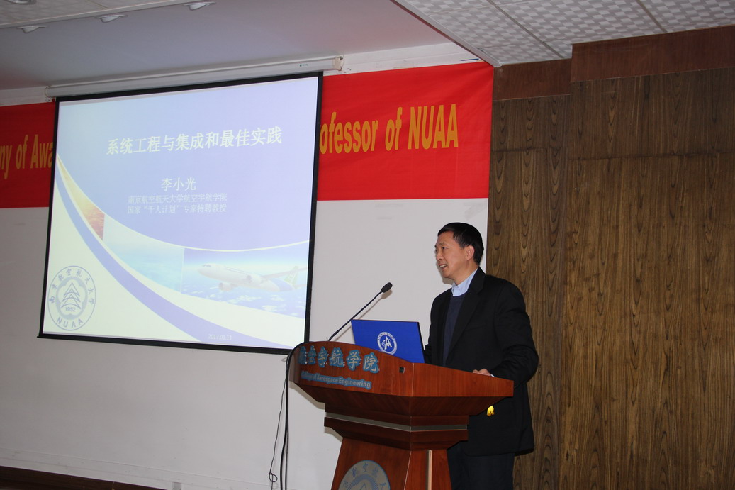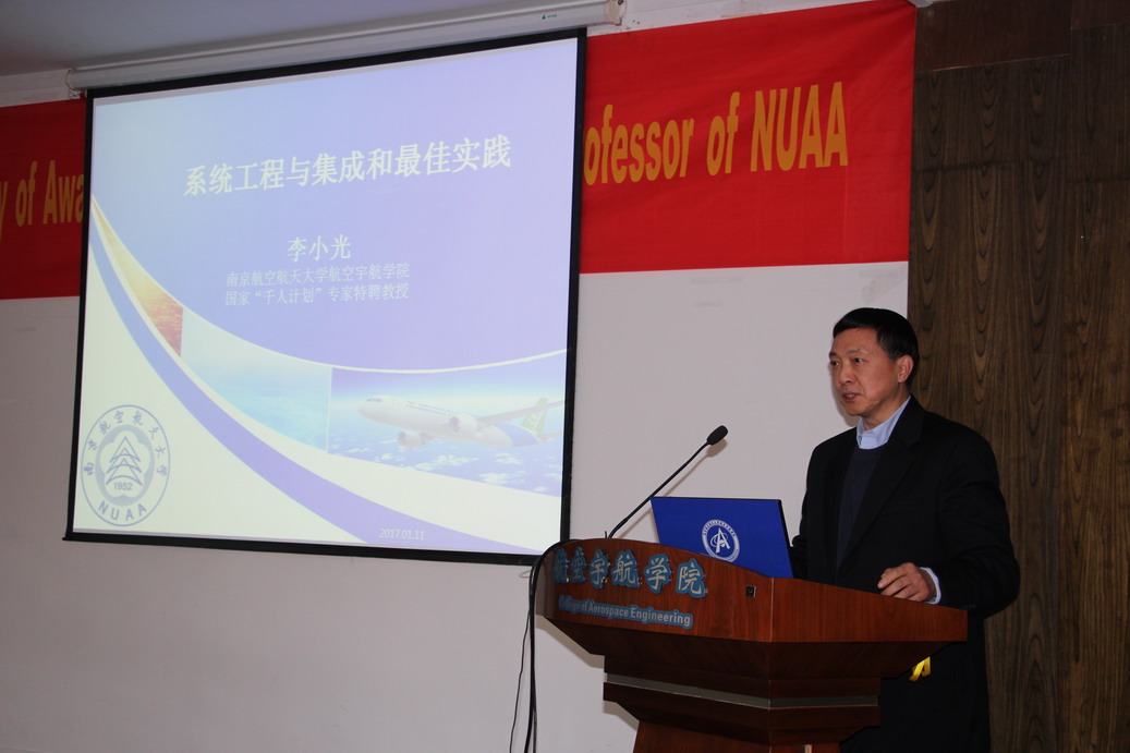 2017年1月11日上午,在明故宫校区航空宇航学院报告厅,公司专家李小光教授应邀做了题为“飞行器系统工程和集成方法与最佳实践”的报告。