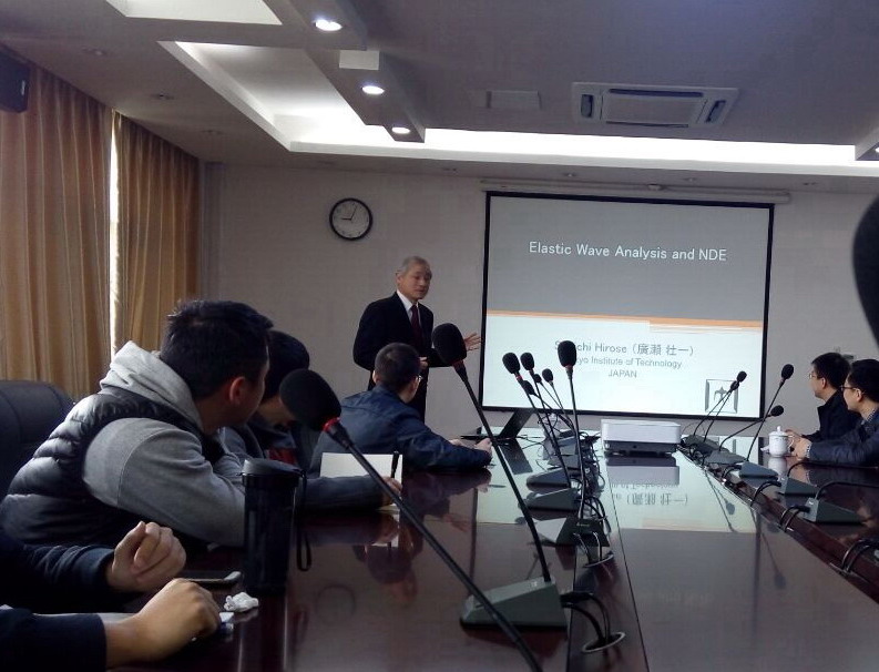 应公司航空宇航学院机械结构力学及控制国家重点实验室钱征华教授的邀请,日本东京工业大学Sohichi HIROSE教授于2017年3月28日至30日访问了公司,并于3月29日为公司师生做了题为“Elastic Wave Analysis and NDE”的学术报告。报告介绍了基于卷积的时域边界元方法,并详述了该方法的理论推导,及该方法在非线性超声波中的应用;同时,又介绍了弹性波在无损检测领域的应用,并详述了如何采用弹性波的近似解来探测缺陷,及超声导波的水下探测。报告结束后Sohichi HIROSE教授与在场的师生就相关领域的研究进行了交流和讨论。师生们认真聆听,特别是博士生们踊跃提问,受益匪浅。钱征华教授主持了报告会。