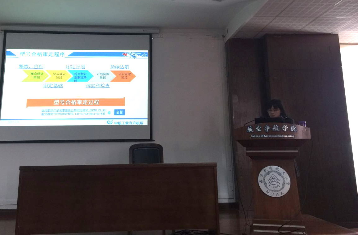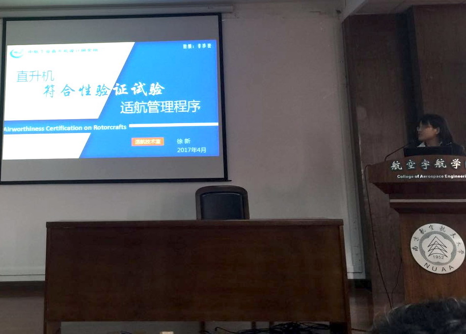 应公司直升机旋翼动力学国家级重点实验室徐锦法教授邀请,中国直升机设计研究所高级工程师徐新于2017年4月8日访问了公司,并为公司师生做题为“直升机符合性验证试验适航管理”的学术报告。报告内容丰富、生动、精彩,介绍了中国直升机设计研究所民用直升机适航取证的进展,对公司开展直升机适航技术科研工作具有非常大的借鉴作用。直升机系副主任朱清华副教授主持了报告。