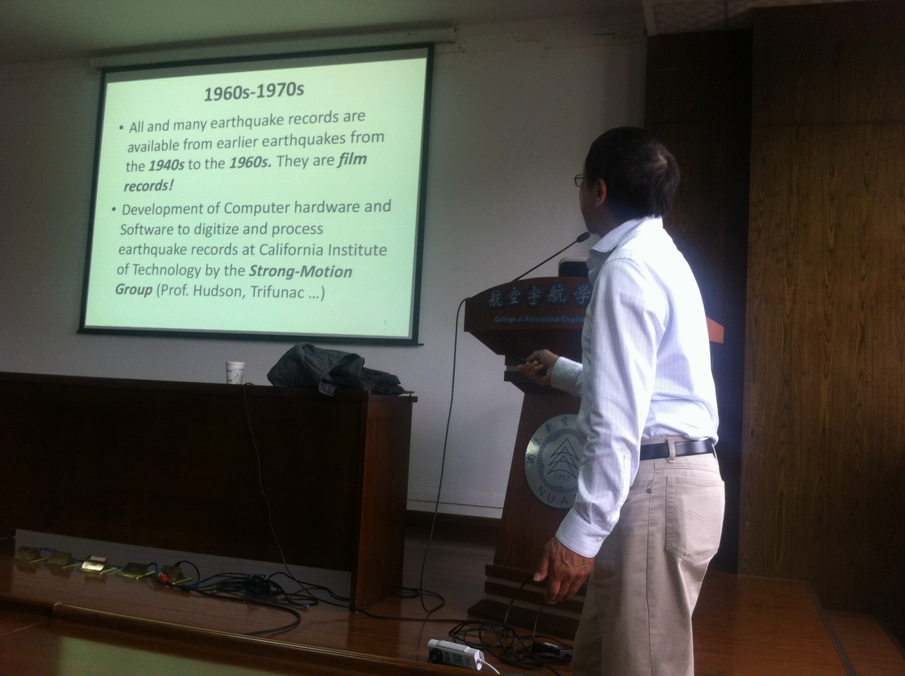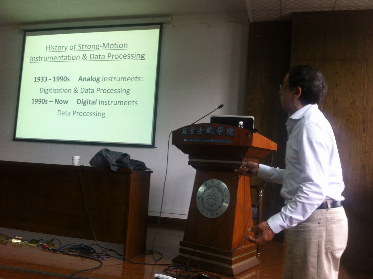 应公司航空宇航学院土木工程系陈少林教授邀请,美国南加州大学Vincent W Lee教授于2017年4月25日至26日访问了公司,并于4月26日为公司师生分别做了题为“Digitization and Data Processing of Strong-Motion Earthquake Accelerograms”及“Wave Diffraction in Layered media”的学术报告。报告内容丰富、生动、精彩,分别介绍了强震记录的处理的发展历程和相关技术,人工波的合成以及波在不规则层状介质中的散射等内容,对公司相关科研工作具有借鉴作用。陈少林教授主持了此次报告会。