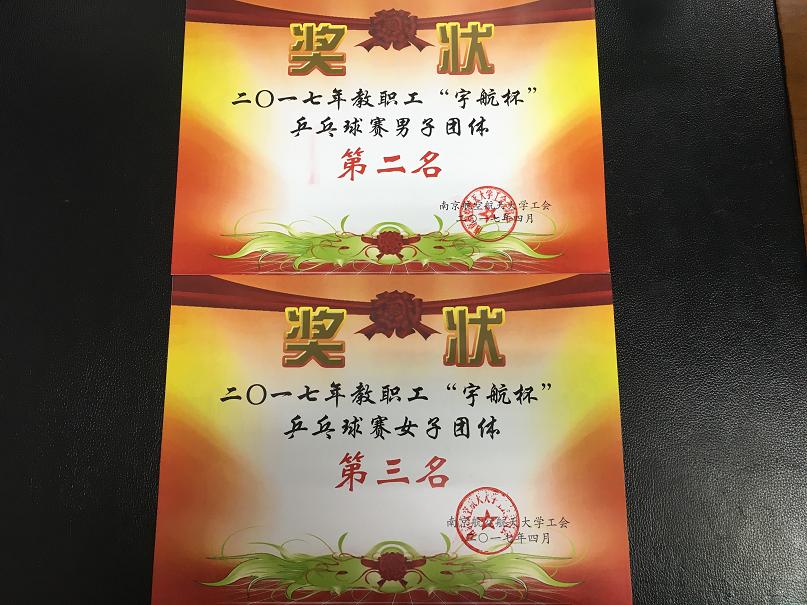“宇航杯”乒乓球赛是校教职工文体节的一个品牌活动,在校工会的信任和学院领导的大力支持下,公司部门工会已连续15次成功举办该项赛事。公司部门工会认真组织报名、联系场地、制作秩序册等;与此同时也在加紧组织本院参赛队员的训练;队员们克服身体抱恙、出差、有课等种种困难,挤出时间,刻苦训练,最终获男队第二名、女队第三名的好成绩。至此,公司女队已连续四年进入前三,男队也在不断追赶,成绩节节攀高,�得亚军。