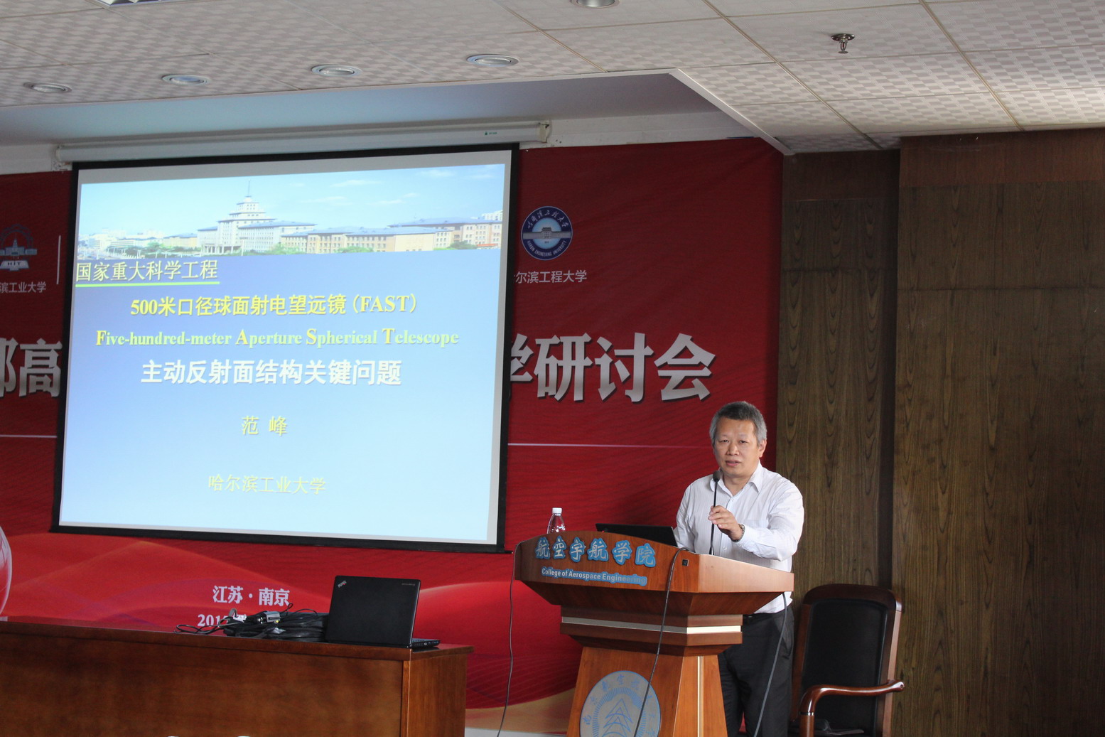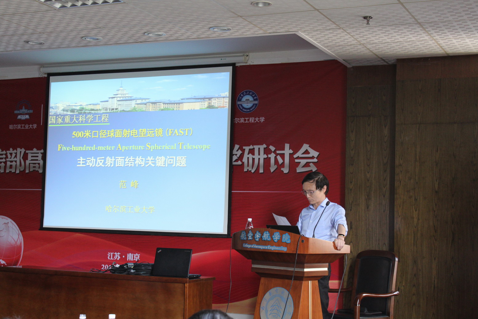 应公司航空宇航学院土木工程系吴瑾教授邀请,哈尔滨工业大学土木工程学院经理、国家杰出青年基金获得者、长江学者范峰教授于2017年5月12日至14日访问了公司,并于5月12日为公司师生做了题为“500米巨型望远镜FAST结构关键技术”的学术报告。报告内容丰富、生动、精彩,介绍了FAST建设背景、反射面结构系统及关键技术、健康监测与诊断、模型试验等内容。吴瑾教授主持了此次学术报告会。